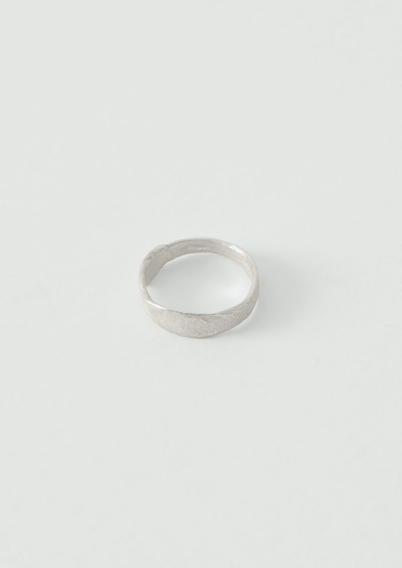 Silver ring by Emily Nixon, handcrafted in Cornwall from sterling silver using the lost-wax casting process. Designed with an undulating edge and textured surface, recalling forms shaped by the sea. Exclusive to TOAST.