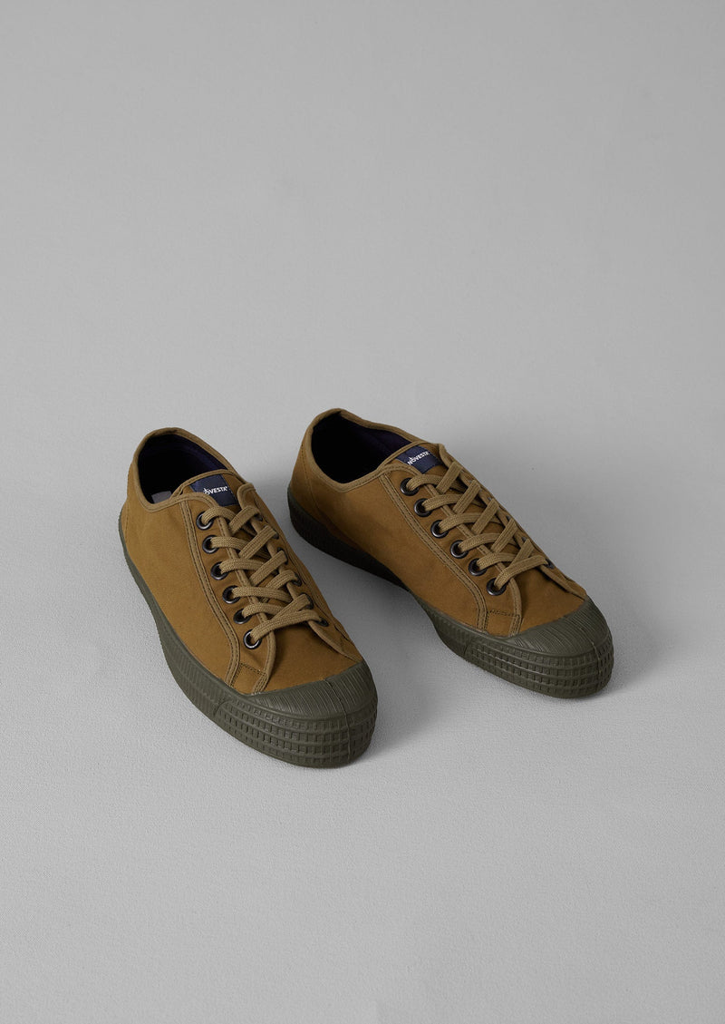Classic plimsolls from Novesta, crafted from cotton and coated in a water-resistant wax. The signature natural rubber sole is machine-pressed onto the upper and finished with precise manual work to create a tire texture.