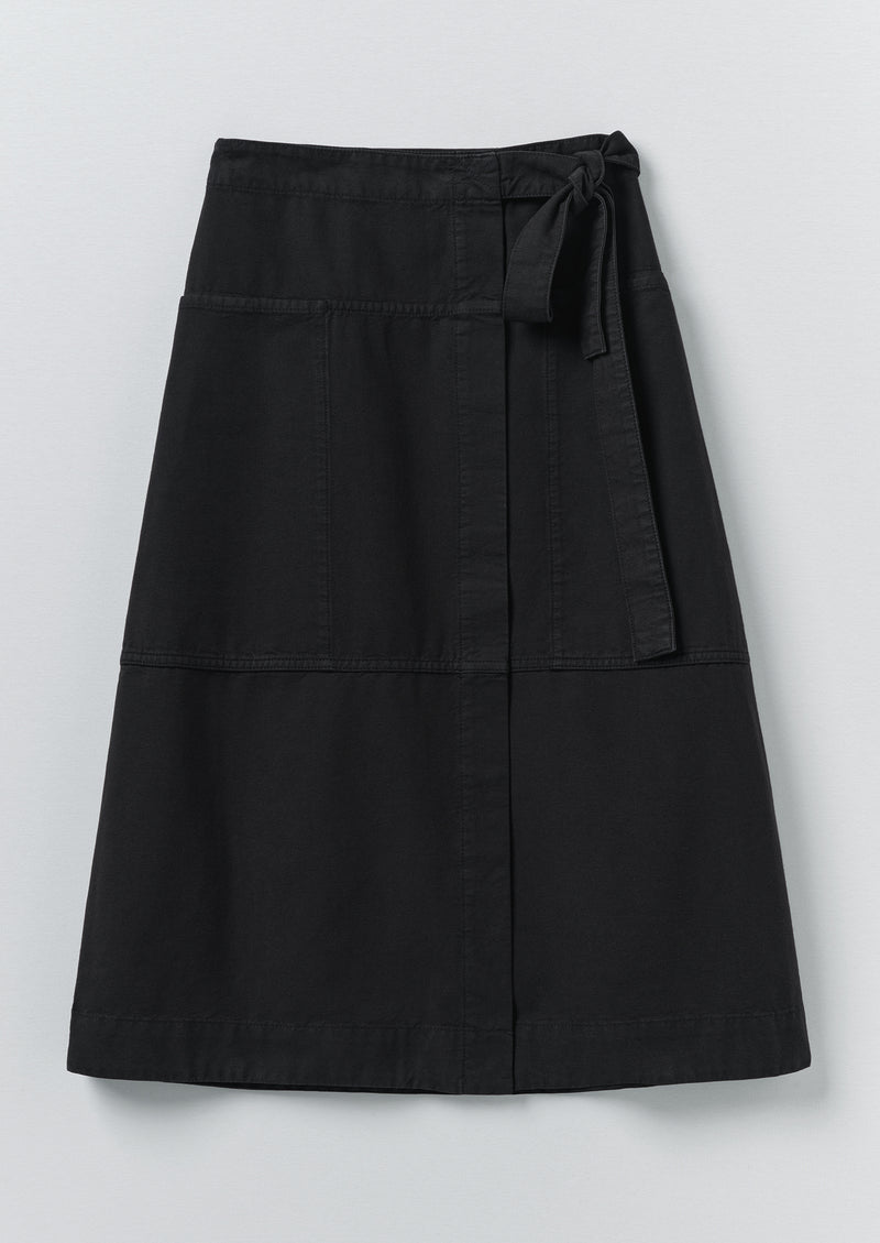 Subtly drawing on uniforms worn by chefs, our apron wrap skirt is made from hardwearing cotton canvas, then garment-dyed for a rich depth of colour. Constructed from panels to an A-line shape and finished with large side pockets.