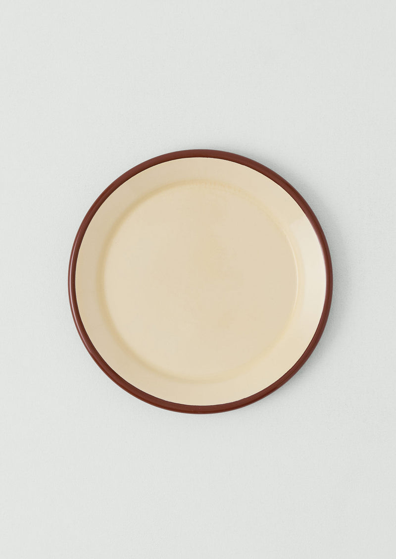 Traditional, durable and smooth, porcelain-infused dinner plate, for camping, or as you will. With a small amount of colour variation from batch to batch. Mint/Chestnut colourway exclusive to TOAST.