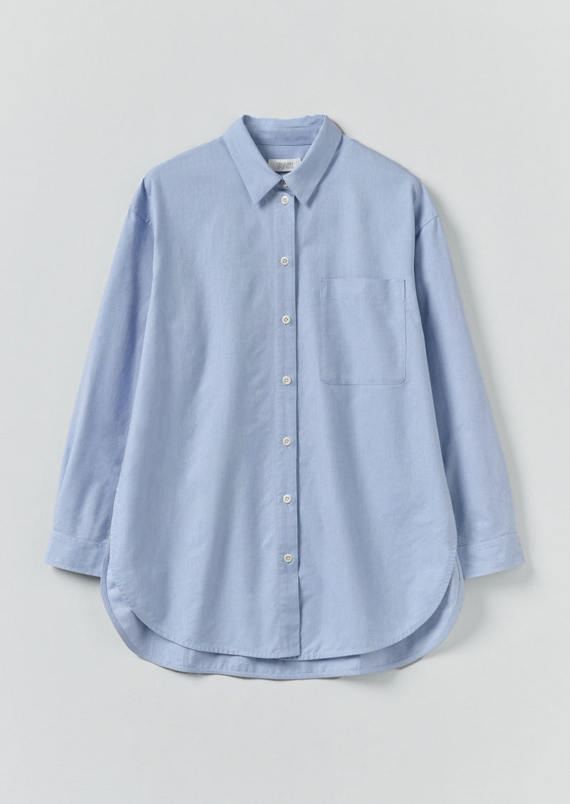 Our oversized shirt is cut from crisp organic cotton Oxford, with a patch pocket on the chest and a curved hem which falls slightly longer at the back.