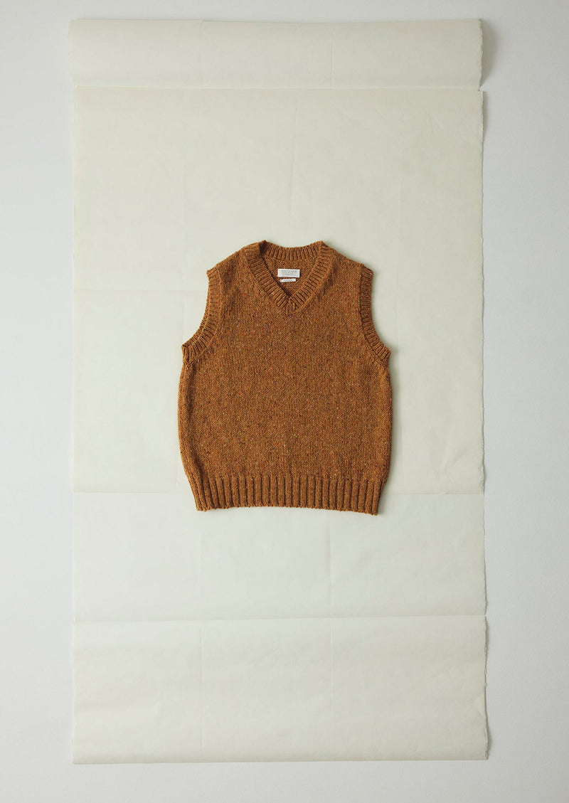 Our classic knitted tank is crafted in Donegal, Ireland by family-run company Bonner from flecky locally-spun wool. Shaped with a V-neckline and finished with ribbed edges. Part of our Menswear collection.