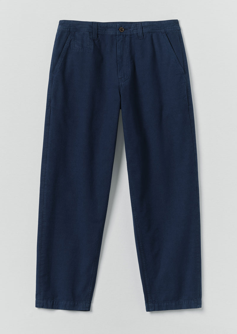 Our tapered Elliot trousers are made from cotton canvas, which is garment-dyed for a rich depth of colour. Punctuated by back welt pockets and secured with a corozo button and zip. Part of our Menswear collection.
