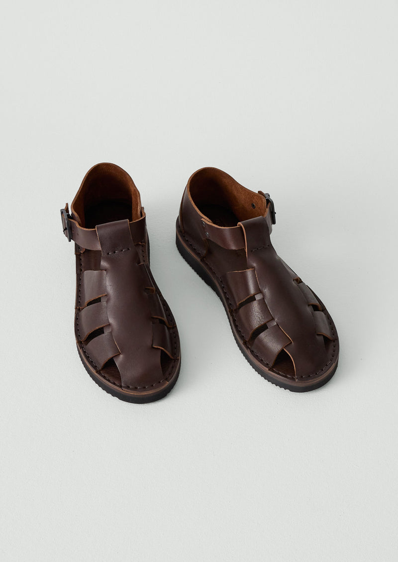 Soft and durable Fred sandals made from vegetable-tanned Italian leather, echoing fisherman styles. With wide straps and a metal buckle. Made in a small town in Puglia. Fracap are a family run business that have passed their skills down through generations. Each pair of shoes is moulded, stitched and finished by hand using the same original process. Also available in Women`s sizes. Exclusive to TOAST. We recommend taking one size up from your usual size.