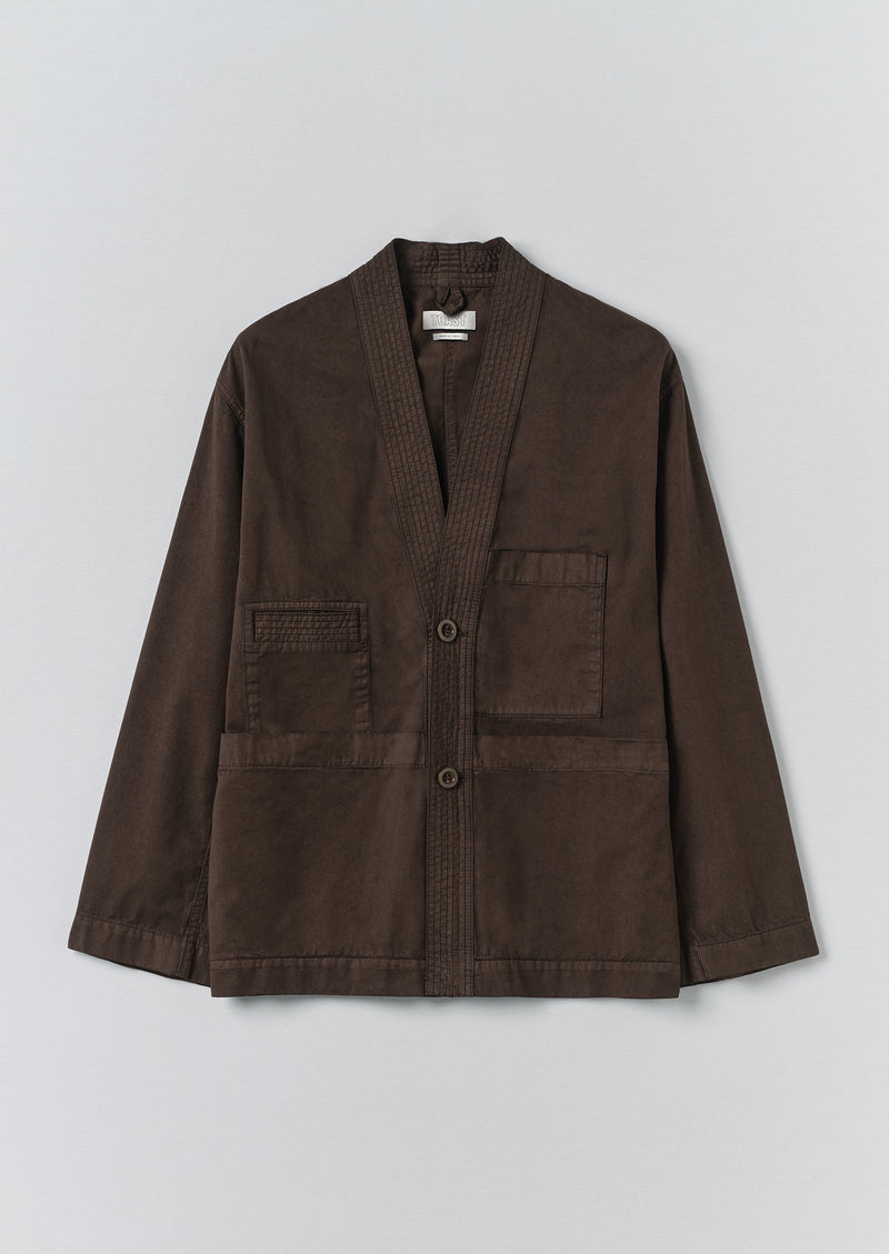 Linear stitching runs down the placket of our organic cotton twill jacket. Cut to an oversized shape with multiple pockets and finished with corozo buttons, then garment-dyed for a rich depth of colour. Part of our Menswear collection.