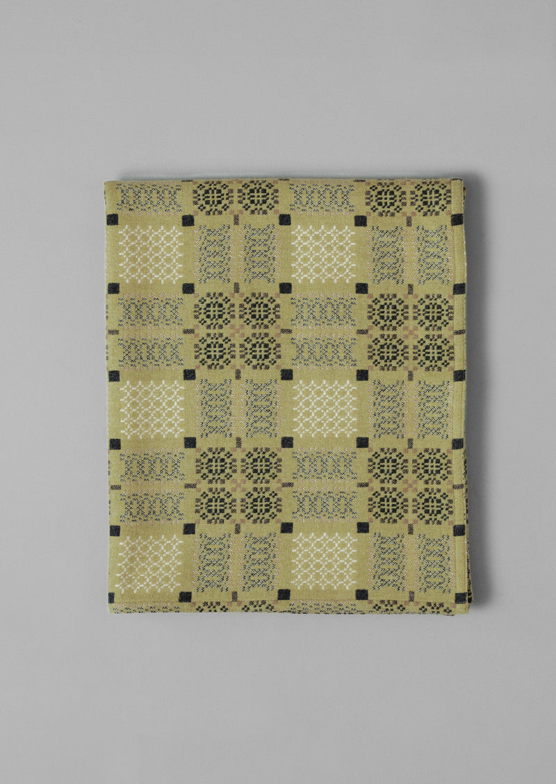 Warm, weighty lambswool Welsh blanket woven in a small white-washed mill in a remote wooded valley on the Pembrokeshire coast by Melin Tregwynt. A mill has stood on the site since the 17th century, and has now been owned by the same family company since 1912. The intricate, reversible Knot Garden weave from the Melin Tregwynt archives was created in the 1950s, and is reimagined in an exclusive colourway for TOAST. Finished with a simple hem, making it fully reversible.