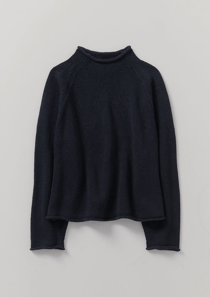 Our swingy, easy sweater has shaping at the yoke for a considered shape. Crafted from a textured, weighty linen and organic cotton blend to a high-neck silhouette with raglan sleeves, then finished with rolled edges.